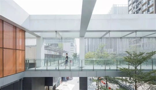 万科云城连廊,横跨街道,快速到达4栋塔楼,归家流线简单直接,不必从热闹的人车街道中穿行,提升儿童归家的安全度,同时,也为社区居民创造相遇场景,促进友好社区氛围的形成。