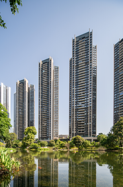 龙光玖龙台(北区),毗邻两大城市公园,景观资源优越。设计结合城市广场,多层绿色人行道等开放空间,让绿色生态景观渗透到每一角落,包括儿童在内的居民都享有充足的绿色感受。