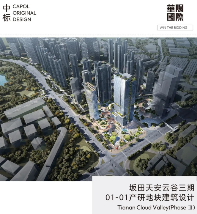 此前华阳国际原创方案已经中标【天安云谷三期商住地块】,构建云时代的一站式产城社区。两大地块持续发力,推动产城融合与城市高品质建设。