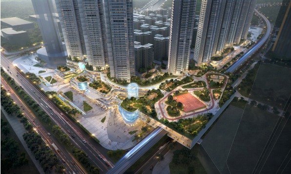 总建筑面积约70万㎡TOD公园大城,整体容积率约1.57的超低密度社区。建筑设计通过衔接对外交通联系及对内交通组织,实现盖上开发空间与城市的充分融合,以城市融合居住+地铁+公园叠加的规划理念,营造多维度、立体型、沉浸式的TOD典范生活。