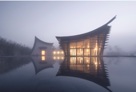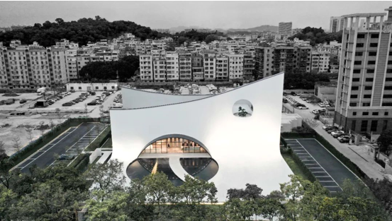 项目位于广州市黄埔区,与珠江相望,旨在为珠江村旧改项目打造一个同时反映地域文化特色和未来感的标志性建筑。设计灵感来自于珠江上遥遥升起的一弯新月,建筑师希望生活馆象征着珠江的新月,与“珠江新月”遥相对应,熠熠生辉。同时,生活馆与当地历史文化有着密不可分的关系,所以提取珠江村的龙舟文化加入设计中。正所谓“珠江新月,故梦寻龙”。