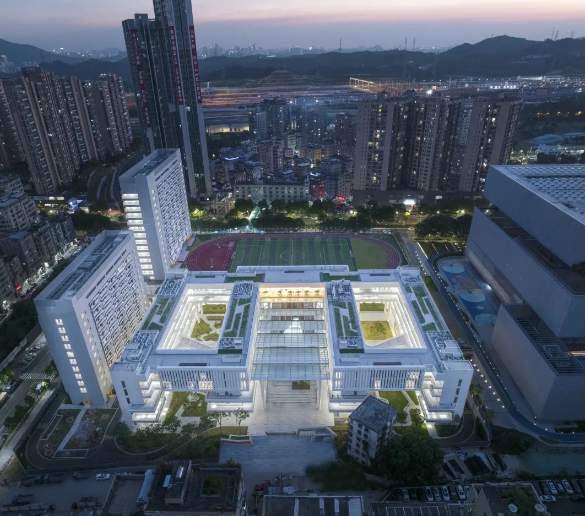 随着深圳教育开启先锋变革,快速建造与建筑品质如何协调,成为民生工程的难点。华阳国际作为设计总包方,以设计牵头EPC总承包模式承接龙华三所学校(红山中学、格致中学、观澜中学改扩建),有效串联起各专业和相关单位,克服疫情阻碍,从设计到交付仅1年半时间,让未来校园照进现实。