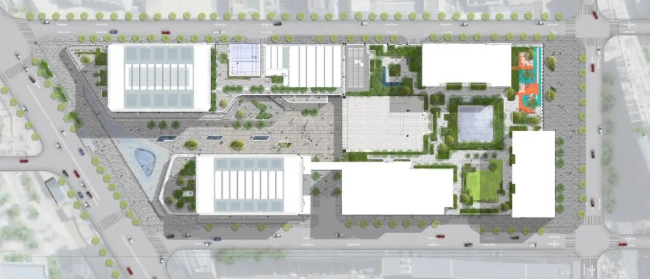 项目创新高密度下的发展模式,总体规划分为两个区域:北侧规划一个约30万㎡的商业综合体,打造食品文化体验中心,以健康回馈社会,实现片区产业升级,激发区域商业活力;南侧规划一个36班小学,缓解区域学位紧缺的难题,落实区域配套责任,提高片区价值。