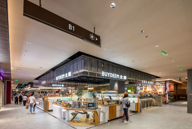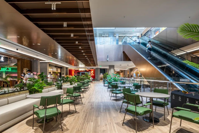 为实现市集型购物中心的概念,万象食家在形态和内容上都呈现出市集化。在空间规划上,平面布局采用了“边厅+中岛”的模式,有大量公共空间、敞开式品牌店铺,且各楼层根据其主题业态不同,设计差异化的空间。在业态规划和品牌组合上,规划近200个品牌的小面积店铺,鼓励品牌打造与市集相融合的新概念店铺,构造更为丰富多元、沉浸式的消费场景。