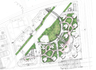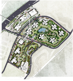 总图设计,第一件事是寻找关系。对项目地块的结构、视线、景观、交通组团等关系进行大量分析后,形成最早的基本概念。即使在非常初期的阶段,也要把概念、环境、道路系统以及轴线关系,在总图中清晰表现。
