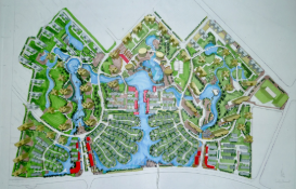 大开大合,中国国画的一种技巧。画面中应有疏密之分,疏能跑马,密不透风。建筑总图设计也是如此,不能太过均衡,要有收有放。
