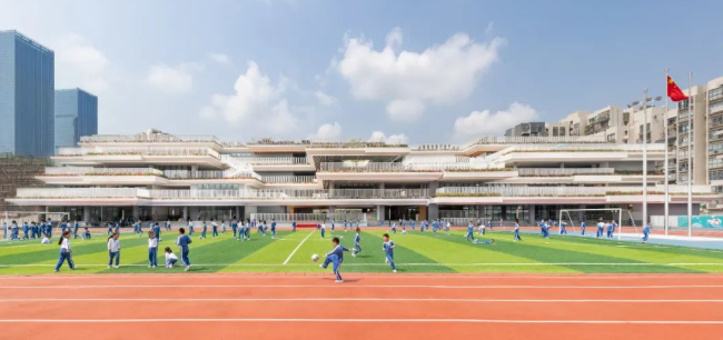 当下教育建筑,绕不开的议题,是处理集约用地与高密度校园的矛盾,如何处理校园中占地规模大的运动场,从空间系统到活动动线,华阳国际一直在设计与实践。
