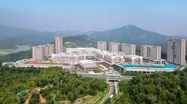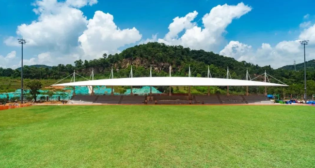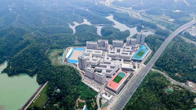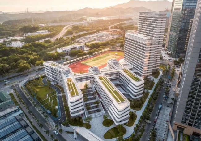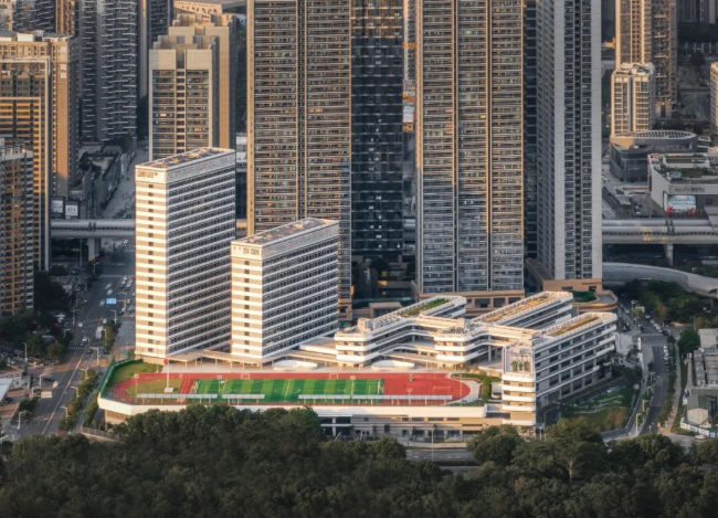 深高高中园,有着独一无二的自然生态环境,被誉为深圳“最美森林高中”。建筑规划中,运动场及文化空间被打造为城市界面,三座运动场,围绕着三所学校的教学楼延展而出,满足三校独立办学需求,同时强化校园运动场地与外部关系。一方面,运动场地向城市与自然打开,让学生的运动置于更开阔的环境体验中;另一方面,也向城市展现混合共享、生机勃勃的校园形象。