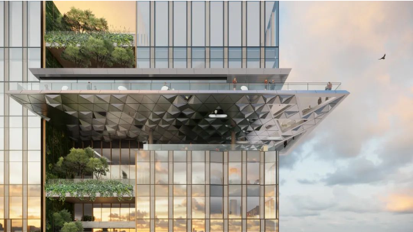 裙楼空间有丰富的露台、退台空间,工作之余,充分吐纳自然气息;不同朝向的视窗盒子,近看园区广场,远眺郊野公园;最具特色的空中飘板,把阳台、露台及共享玻璃盒融为一体。
