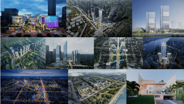 深圳绿景白石洲一期商业设计、深圳光明区新湖街道A641-0030地块项目、大运枢纽物业开发项目设计总承包、合肥卫岗王卫片区城市更新+TOD项目、海口恒力总部、广州国际数字创汇绿谷、万丰大二区一期、中建壹品澜荟项目商务地块、长江日报武汉后官湖文创园项目、华发昆明竖向云海三期、深汕城投公司书香雅苑小区项目、中海海南万宁滨海项目等。