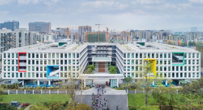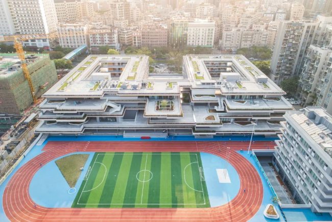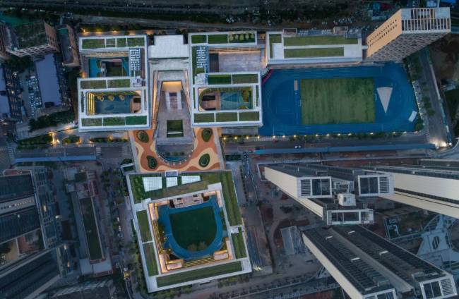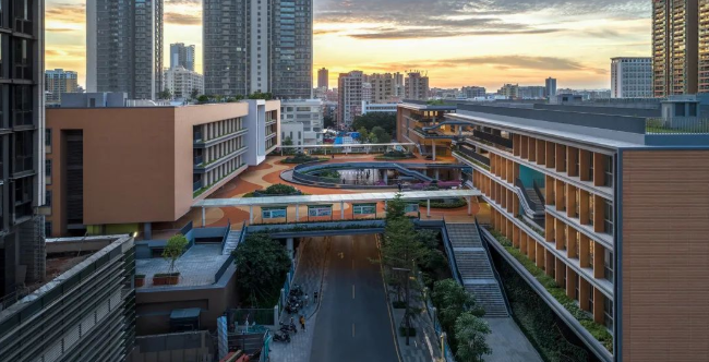 教育建筑走向高密度,这是城市化进程的结果,社会必然的趋势,也是深圳在内众多城市共同需要面对的课题。在重重限制之中,怎样建构建筑空间,使其不至于失却对学生成长的关怀,塑造能够容纳身心健康发展的高品质空间,是当下建筑师思考重点。