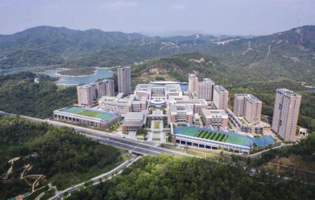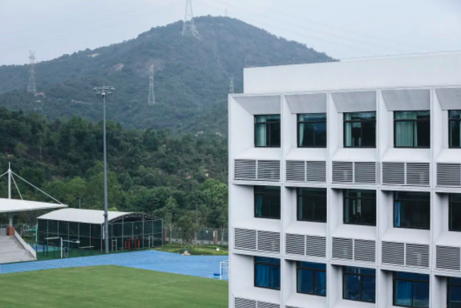 园区选址于龙岗低碳生态城,场地周边森林环绕,为红花岭生态公园,东西两侧为长坑、黄竹坑水库。18公里碧道蔓延,被称为“最美森林高中”,在繁忙的学业中,自然的往往最抚慰人心。