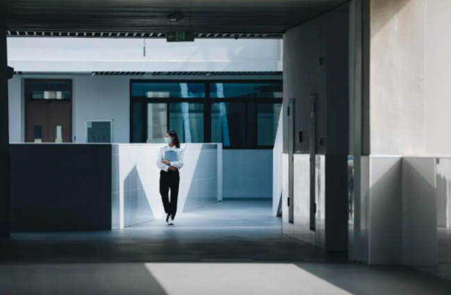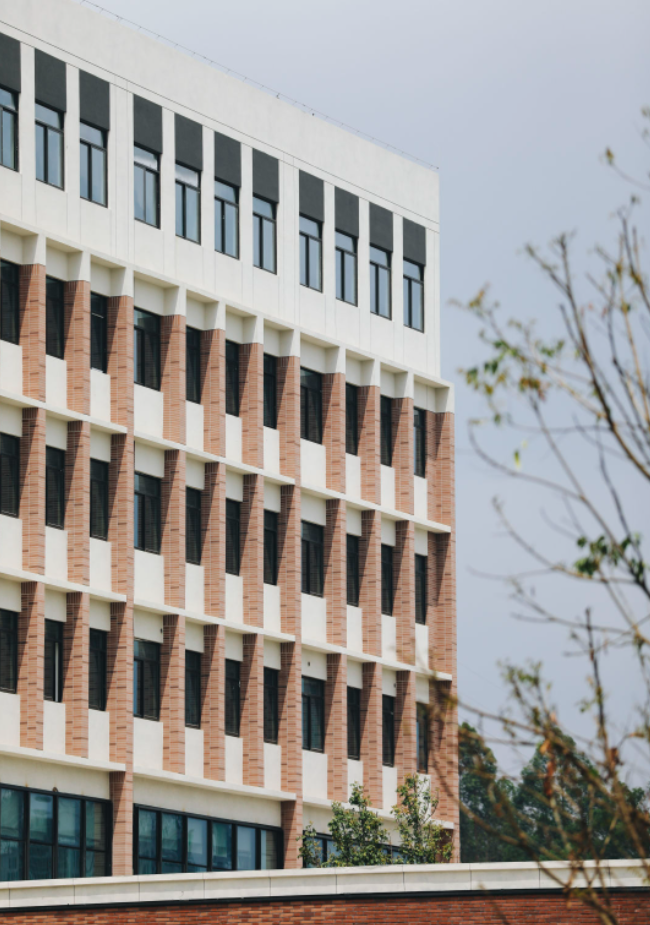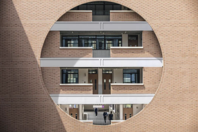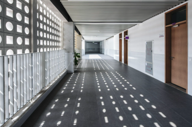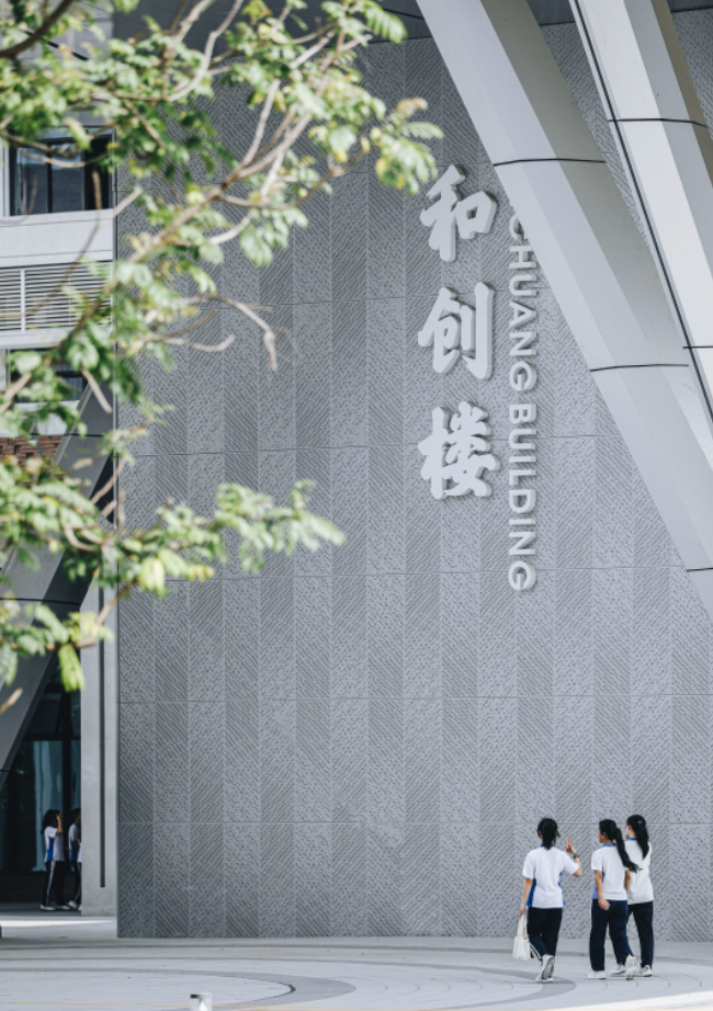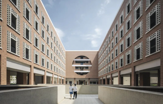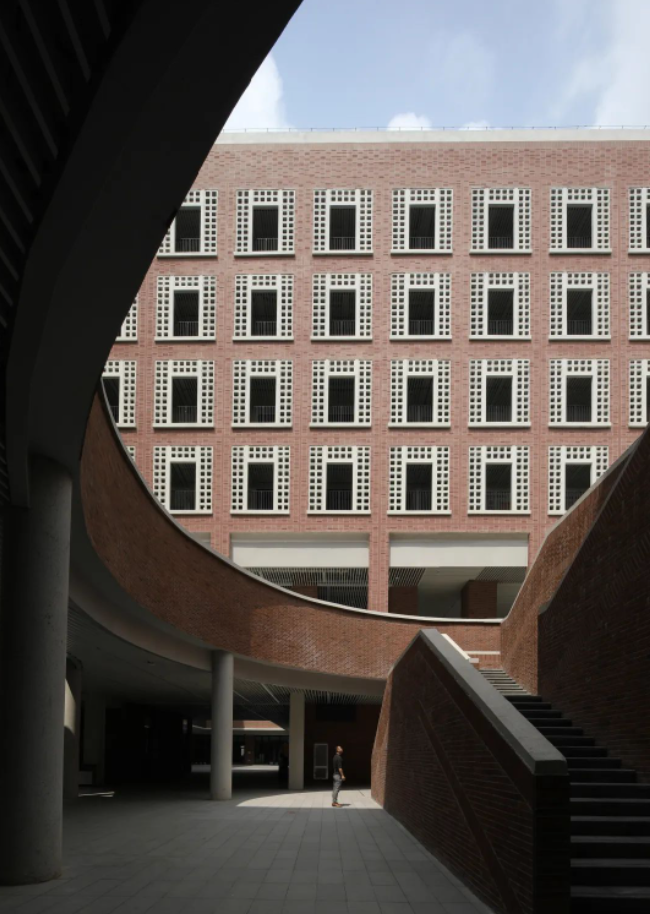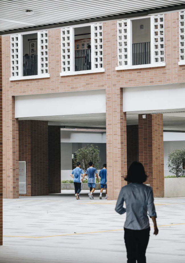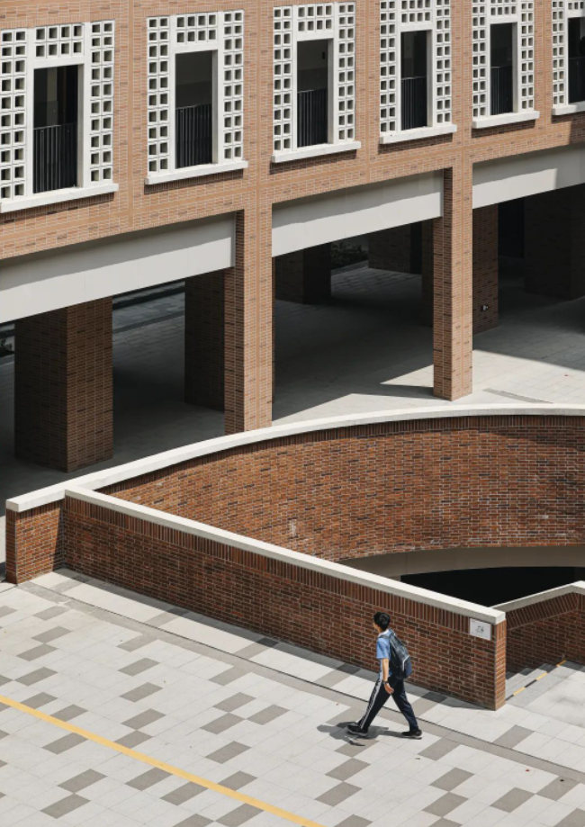 教学楼各层规律排布镂空方窗,带来理性的秩序与规则感
