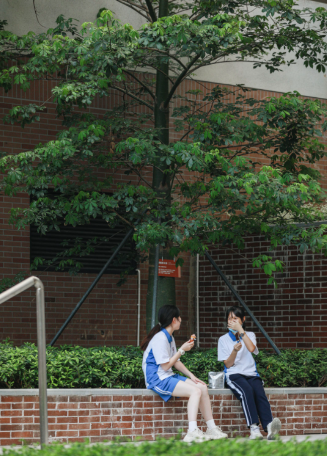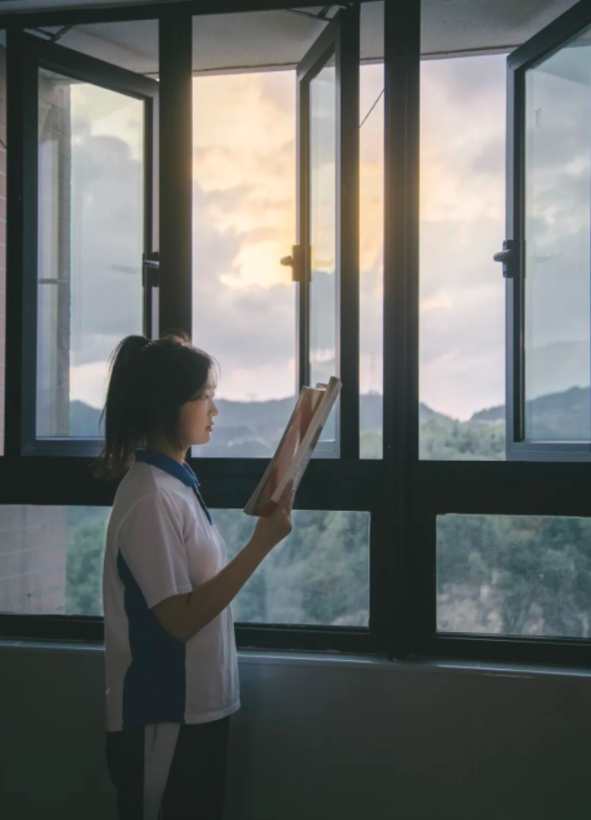 “平时学习累了,走出教室吹吹风,看看晚霞,会放松很多”