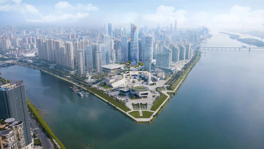 在不同的设计阶段,客户有不同的敏感点,把控关键节点,重点投入人力,保证服务质量和工作效率。投标阶段,通过设计经验整合资源,实现政府与甲方诉求双赢。在北辰·悦江洋项目中,我们做的第一件事情就是确定城市轴线,总图顺应城市中轴,保证极致景观视野,同时,拉高两栋观江住宅做到200米,压低不看江的住宅控制到100米以内,实现观江户数最多;住宅和超塔用足延展面,采用核心筒内置,最大化保证北侧观江视野,最终在投标阶段突出重围。