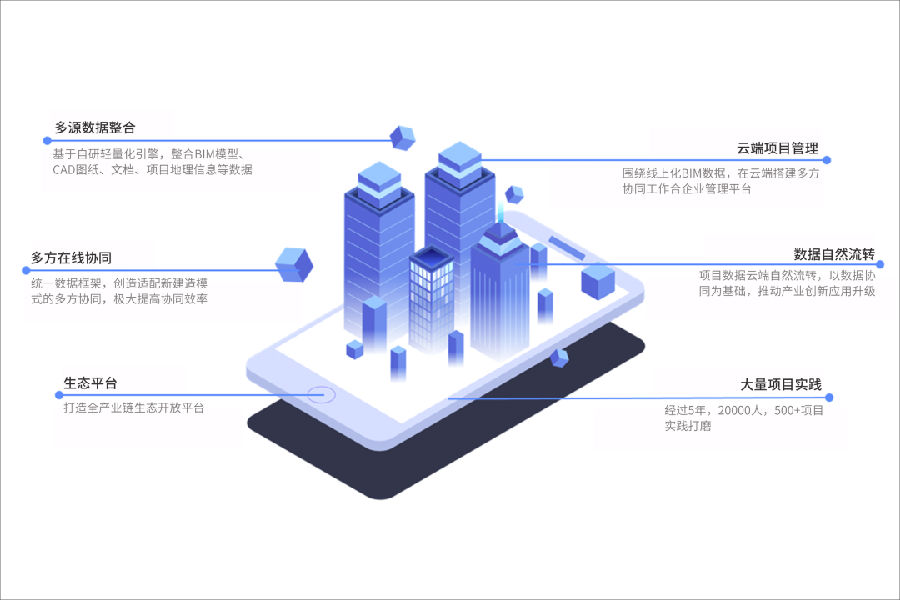 一个实现建筑全产业链的数据互联互通、跨企业的数据协同为核心的产业互联网平台。以设计为起点,以项目管理为中心,融合轻量化引擎、流程引擎、数据引擎、报表引擎,覆盖设计、造价、采购、生产、施工、运维的建筑全产业链场景应用,真正做到设计/管理提质增效。