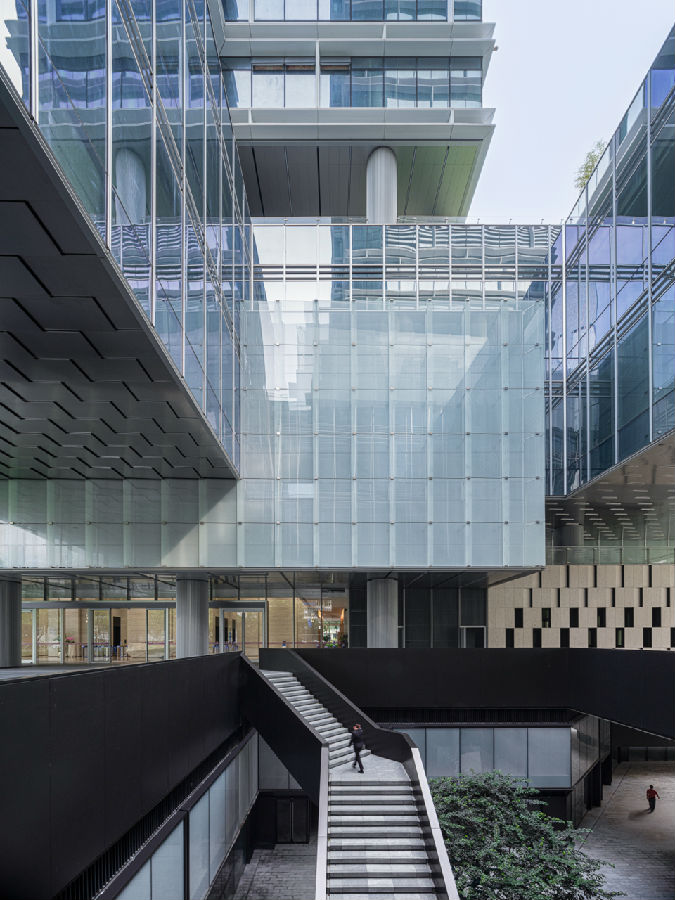 项目位于大湾区极有影响力的高新科研片区,虽然用地极为紧张,设计希望建筑不是以冰冷姿态将城市隔离,而是呈现兼收并蓄的场所精神。