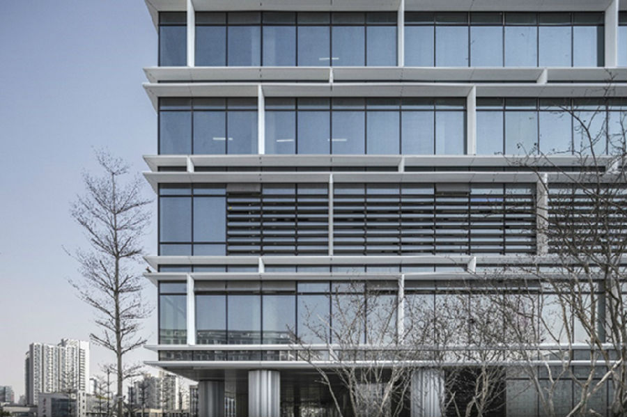 在外立面设计中,通过双层呼吸式外墙、水平遮阳构件、三银LOW-E玻璃等手段,兼顾节能、采光、通风、视线、美观等综合需求。