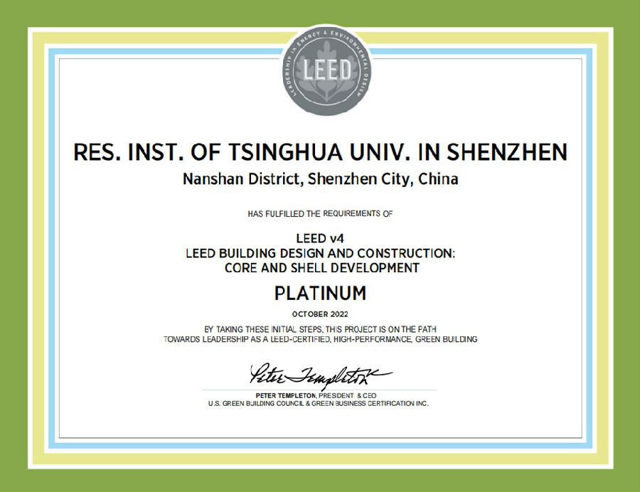 目前,项目已获得美国LEED绿色建筑预认证最高等级-铂金级认证、深圳地标最高级别-铂金级(三星)建成认证。