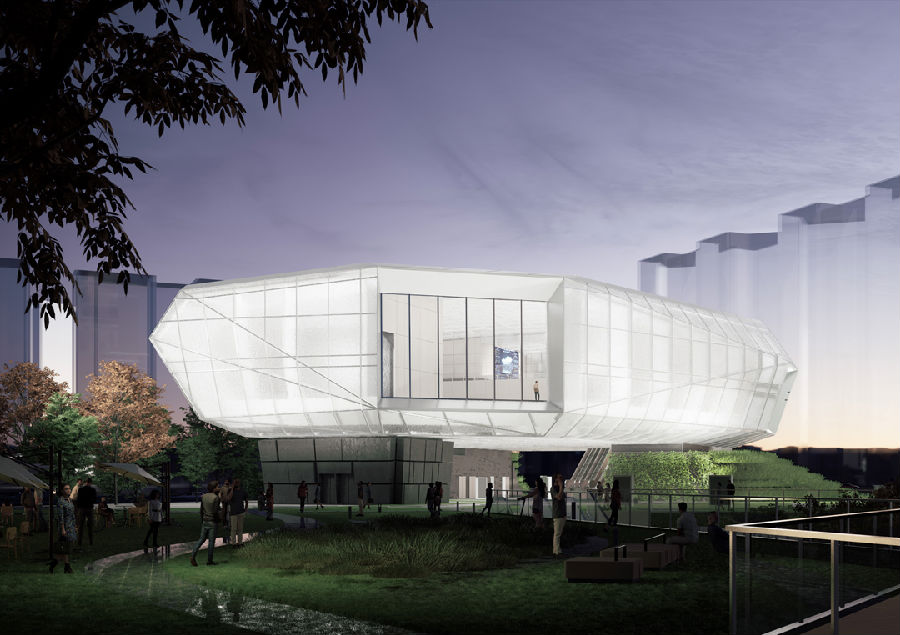 △会展中心:采用一体化桁架壳体,结合智能化绿建新技术,为园区打造智能化平台