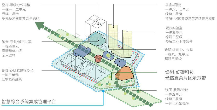 作为建筑生态智谷,如何从规划和建筑层面体现园区的生态性,是设计的发力点。