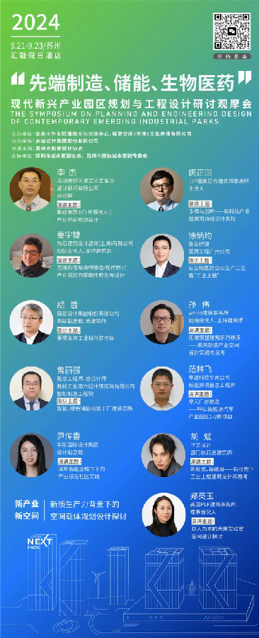 9月21-22日,“2024现代新兴产业园区规划与工程设计研讨观摩会”在苏州举办,聚焦芯片、新材料、储能、生物医药等产业空间规划设计与工程技术课题,解析产业特性与空间适配需求,共议产业空间迭代路径。