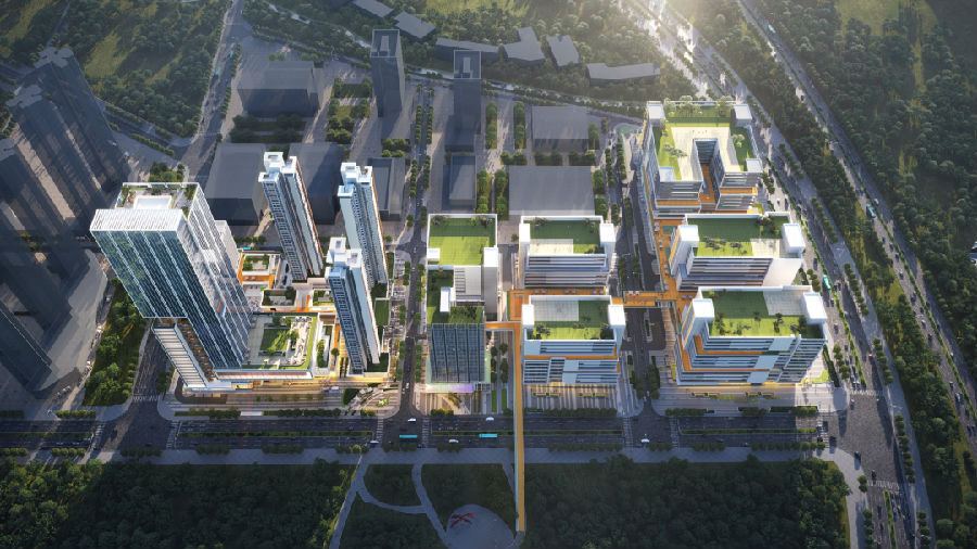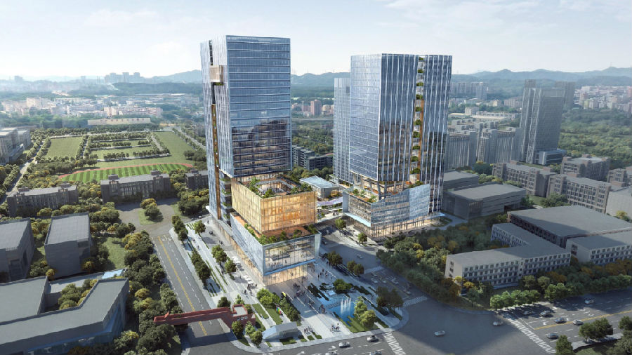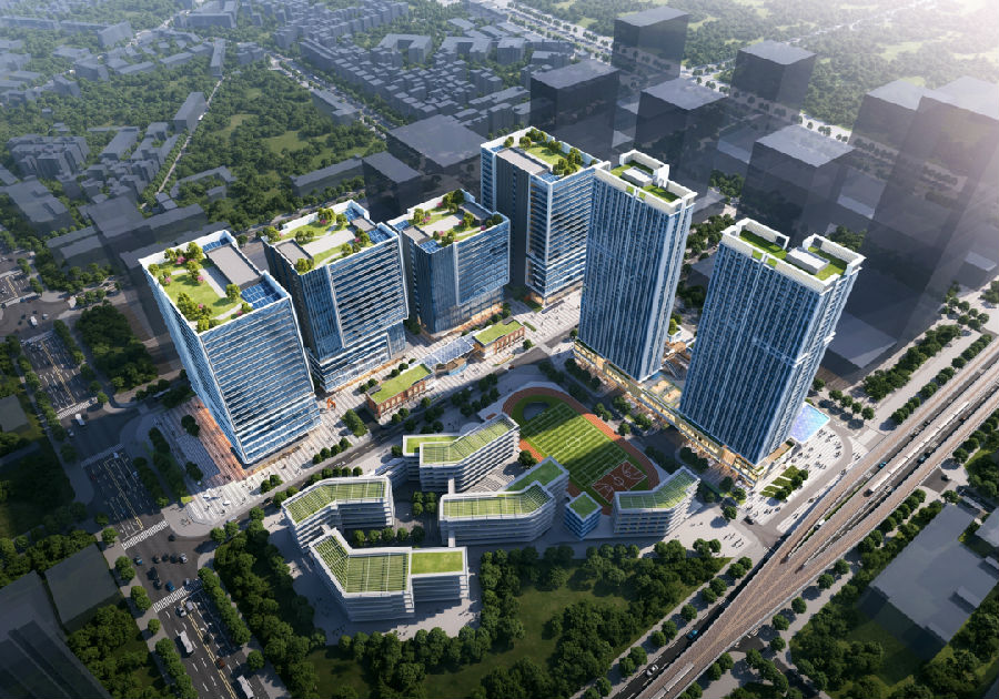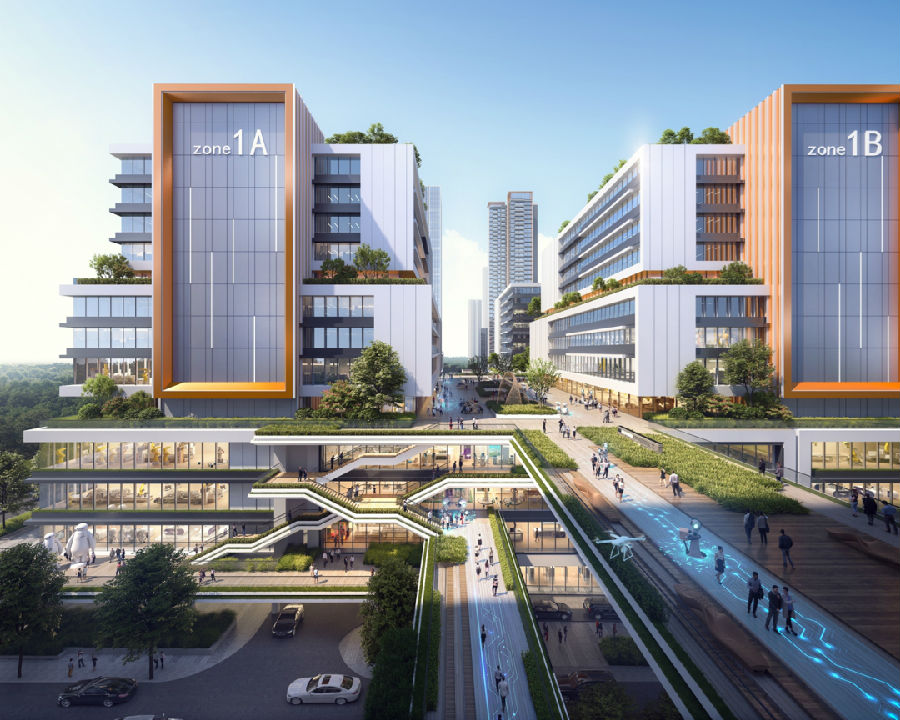 02 智造大厦-深圳龙华建泰产业园,深圳市首批“工业上楼”试点项目,位于龙华超级商圈的核心位置,旨在打造都市型产业中心,适应未来产业升级;地块引入商业街区,在产业功能基础上融入公共配套与商业功能,为园区注入多元活力。