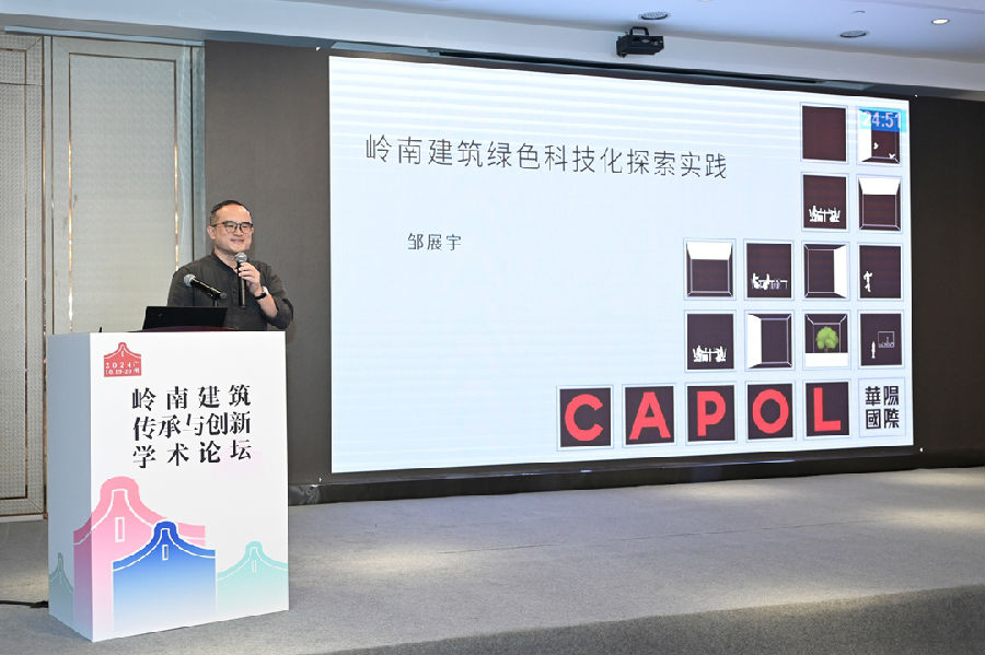 论坛特邀院士、大师、知名专家学者、业界领军人物及相关领域代表,聚焦岭南建筑的历史传承、文化内涵、技术创新、设计实践等议题展开学术分享与交流。华阳国际设计集团董事、执行总裁、执行总建筑师邹展宇和集团总建筑师、集团副总裁唐志华作为委员出席会议。邹展宇先生应邀作学术报告。
