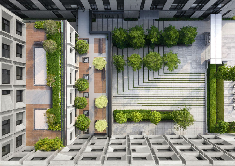 ▲ 全过程绿色低碳建筑设计理念。超过20种绿色低碳建筑设计和技术,实现“三减二补一控”,全面改善建筑环境的微气候,年减少用电约65500度,减少17.7吨碳、51.3吨二氧化碳的排放。