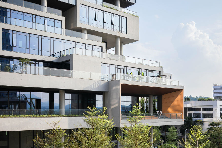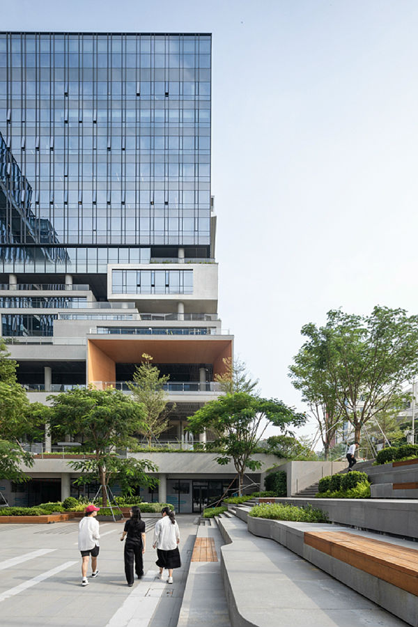 华阳国际结合二十余年办公建筑实践,将岭南建筑与绿色科技结合,基于在地特色,探索可持续、会呼吸、与生态相伴的岭南绿色科技建筑。
