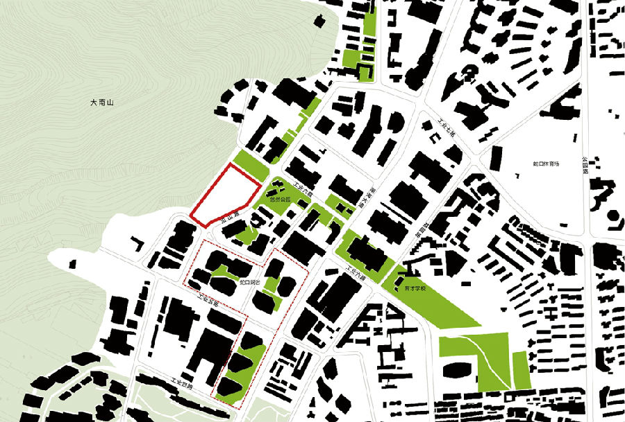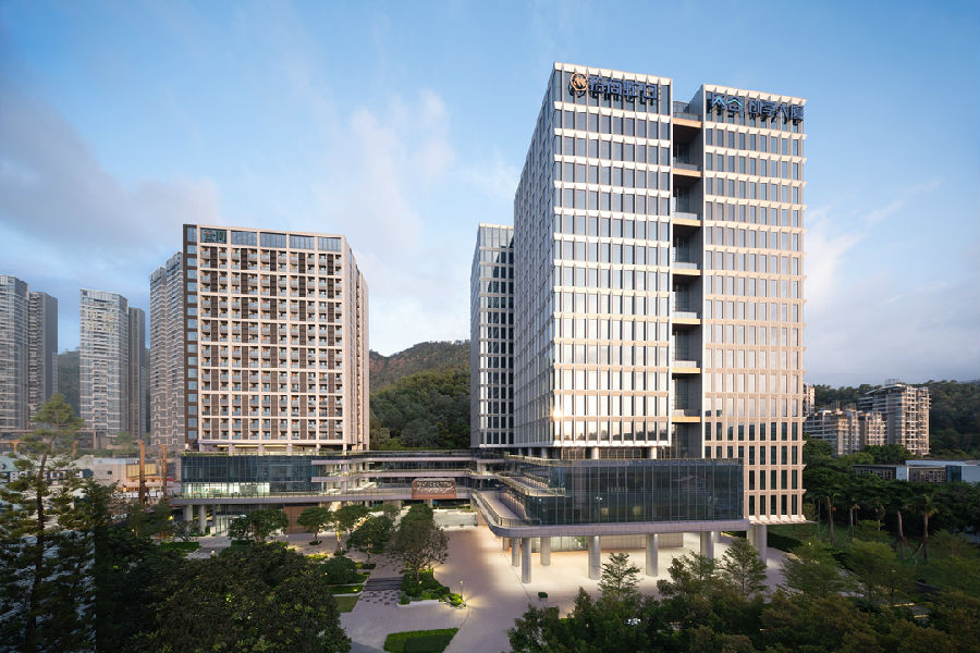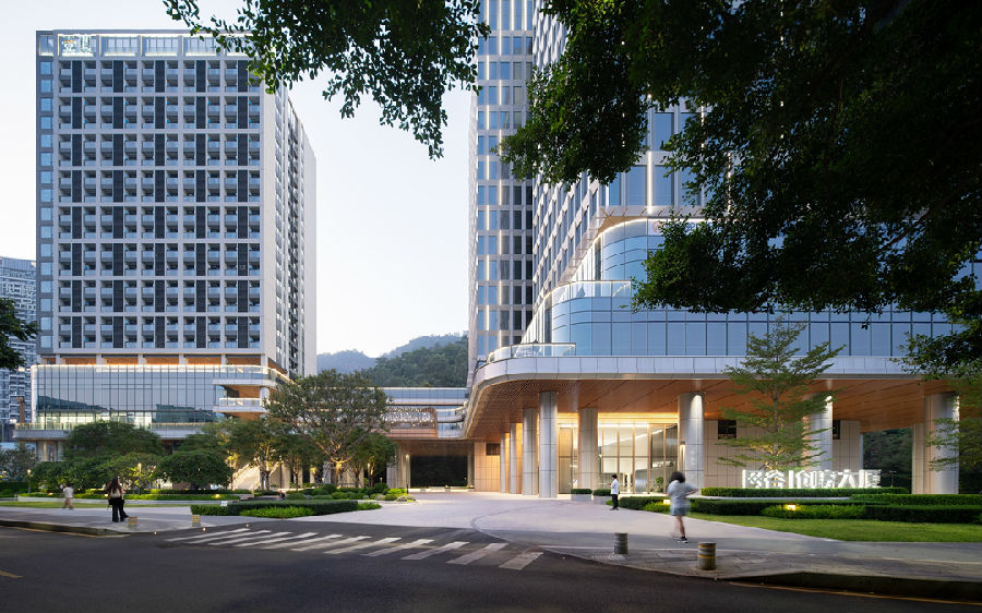 基地背倚大南山,远眺蛇口港区,承接自然与城市的过渡,形成与生态互融相通的城市空间格局。