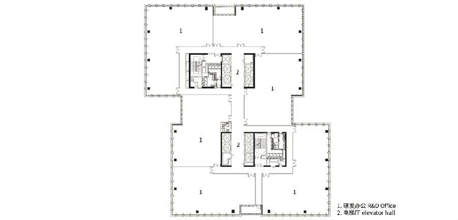 塔楼采用“Z”型错位平面灵活办公。平面双核心筒设计,塑造更多转角景观面,无角柱大开阔空间,靠山面海,广阔视角下都市景观和自然环境在此交融;多功能会议厅和企业展厅的设置也为产业的多元服务提供更多可能。