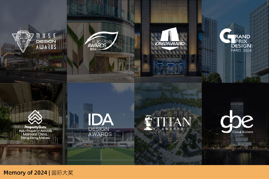-国际方案奖项20+,其中金奖类10+,持续闪耀:美国缪斯MUSE设计奖10+项荣誉、Build4Asia Awards 2项荣誉、CREDAWARD地建师·地产设计大奖1项荣誉、GPDP AWARD法国双面神奖1项荣誉、亚洲不动产奖2项荣誉、美国IDA国际设计大奖1项荣誉、美国TITAN房地产设计大奖1项荣誉、GBE商业与办公建筑大奖1项荣誉等。