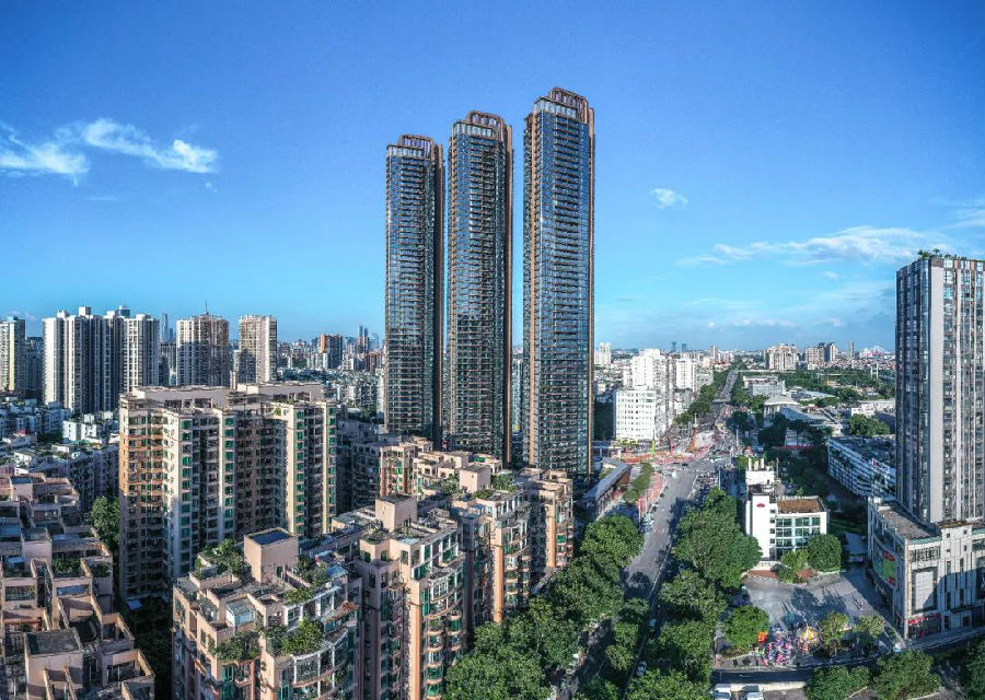 设计基于广州老城区场域的历史文脉原型与客群的老城情结,以“Old Meets New”为内核重构场地精神,3栋180m超高层错动布局,同时提取传统民居“一宅一院”意向重组建筑空间秩序,构建从市井喧嚣到隐逸庭园的三重空间过渡,实现“小隐于野,大隐于市”的生活氛围。