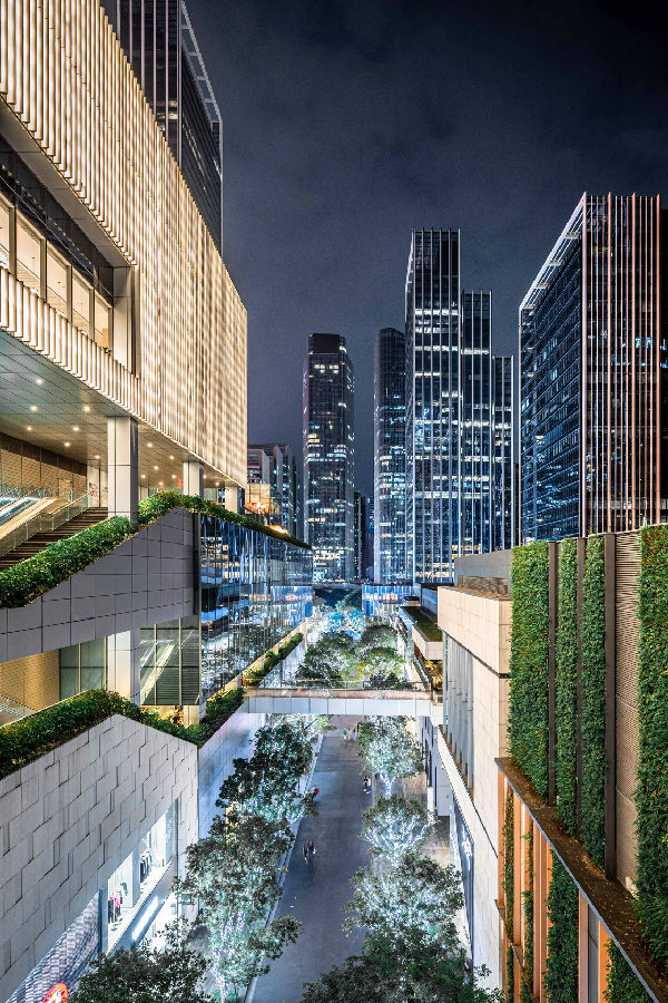 城市山谷间,自然流淌、商业跃动,匆匆的都市人重拾闲适,设计书写空间叙事,编织诗意栖居。