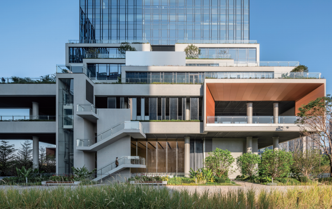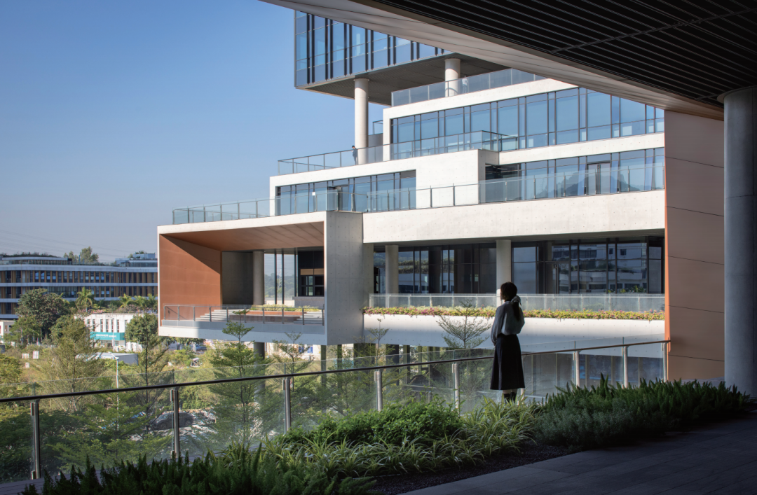 从城市视角看,我们一开始就确立了整体形象,希望它能成为后续地块开发的“文脉”。因此,建筑风貌并非为四家企业分别定制,而是作为一个整体呈现,这与深圳精神、岭南气候及当代知识工作者的环境息息相关。