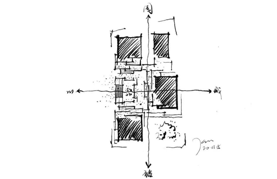 在我看来,建筑犹如一个有机生命体,室内外只是同一基因在不同空间形态中的表达。我们以建筑设计的本构思维,辅以“去装饰化”的理念,贯穿于以下设计工作中: