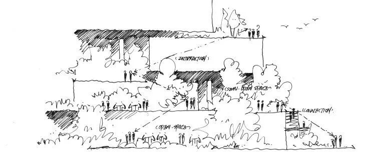 在整体设计理念上,您多次提到了古希腊的城市开放聚场,这个线索如何贯穿了设计的始终?